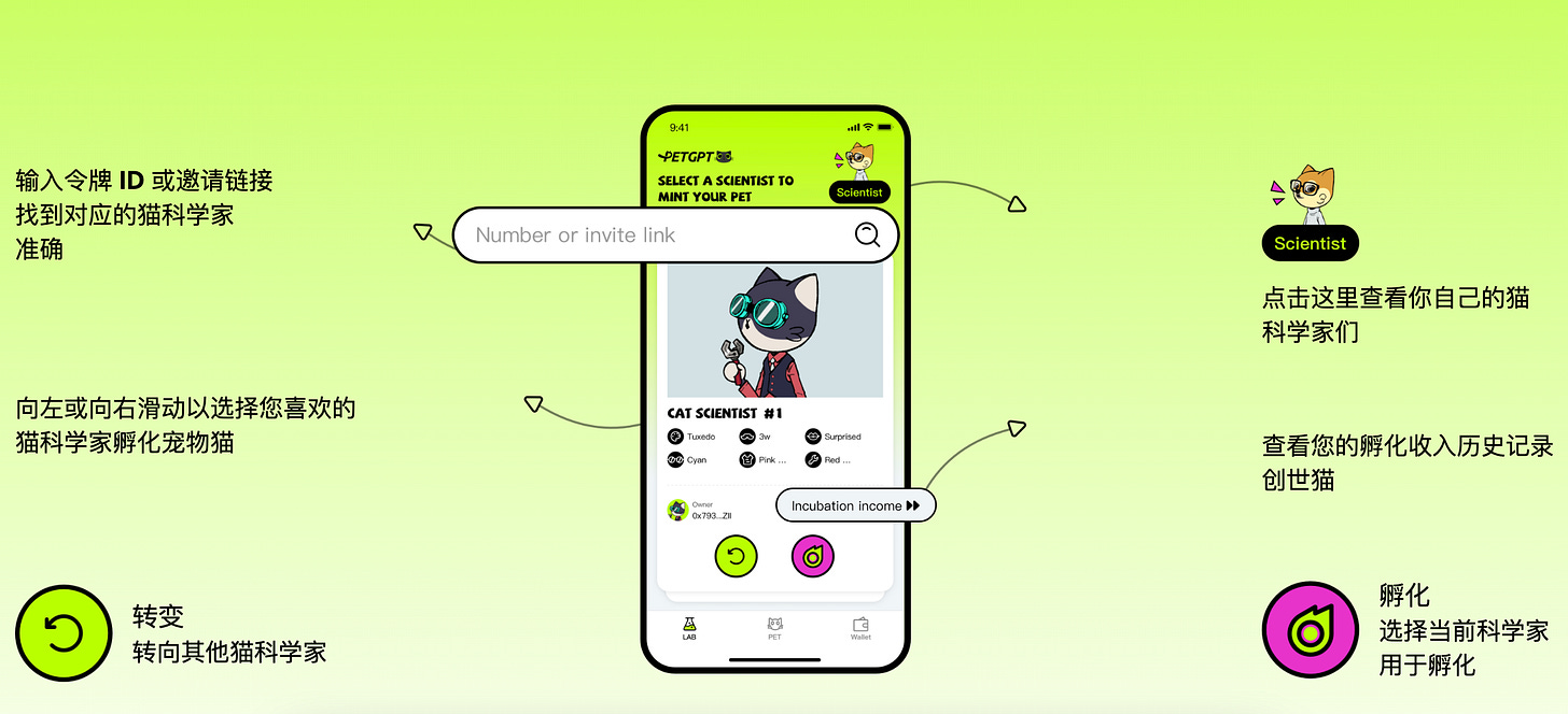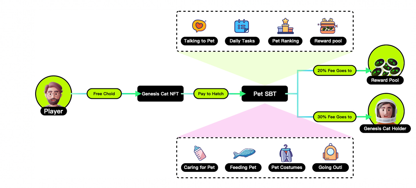 PETGPT 将免费分发 3000 个 Genesis Cat NFT(分批分发,首批 600 个在 Arbitrum 网络上发行)。这些 NFT 在成长游戏中是不可玩的,但属于未来玩家的所有宠物猫都将由它们诞生,会继承创始猫的特征。