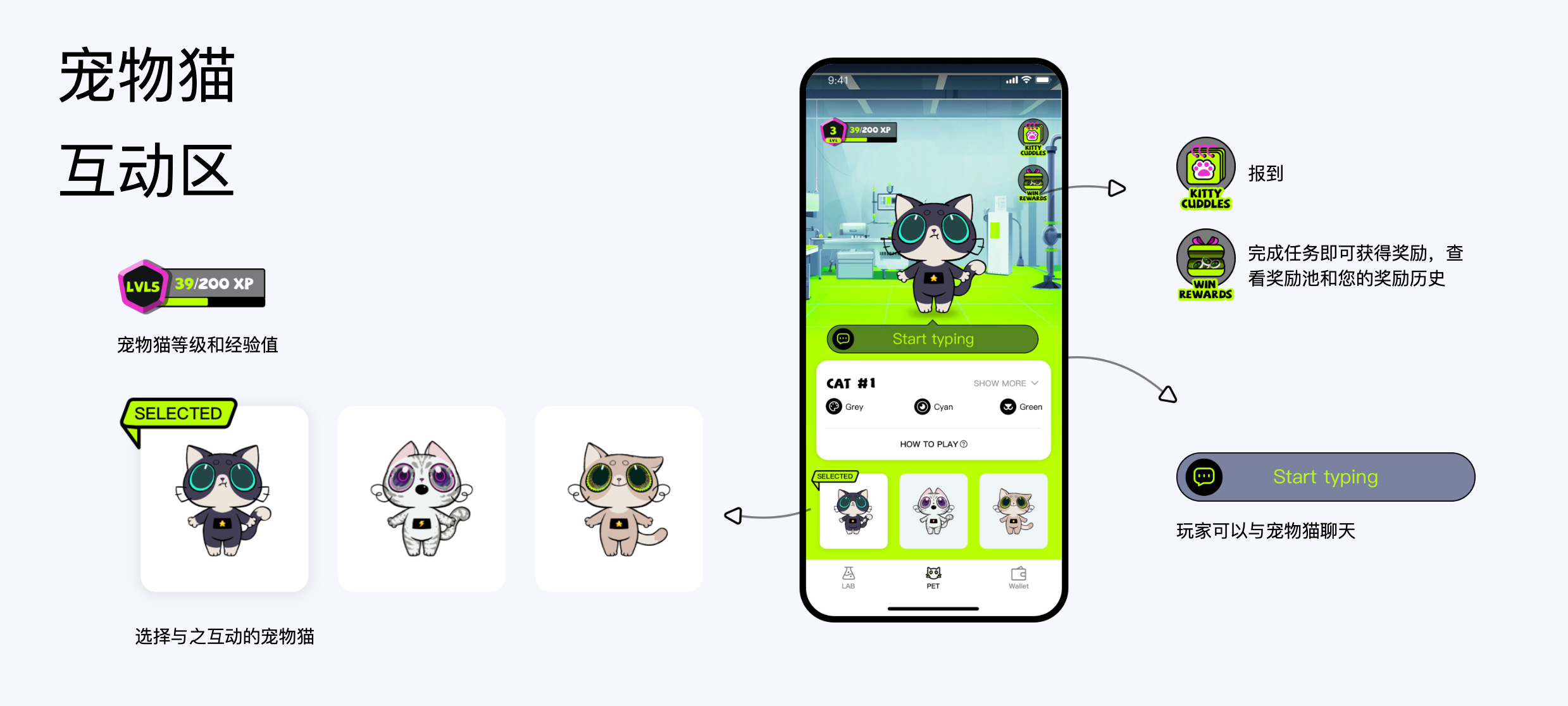 全球首个基于OpenAI的Web 3.0宠物陪伴平台。用户可以通过宠物 NFT(SBT)所有权进行训练、培育、社交和参与其他互动,同时获得奖励。