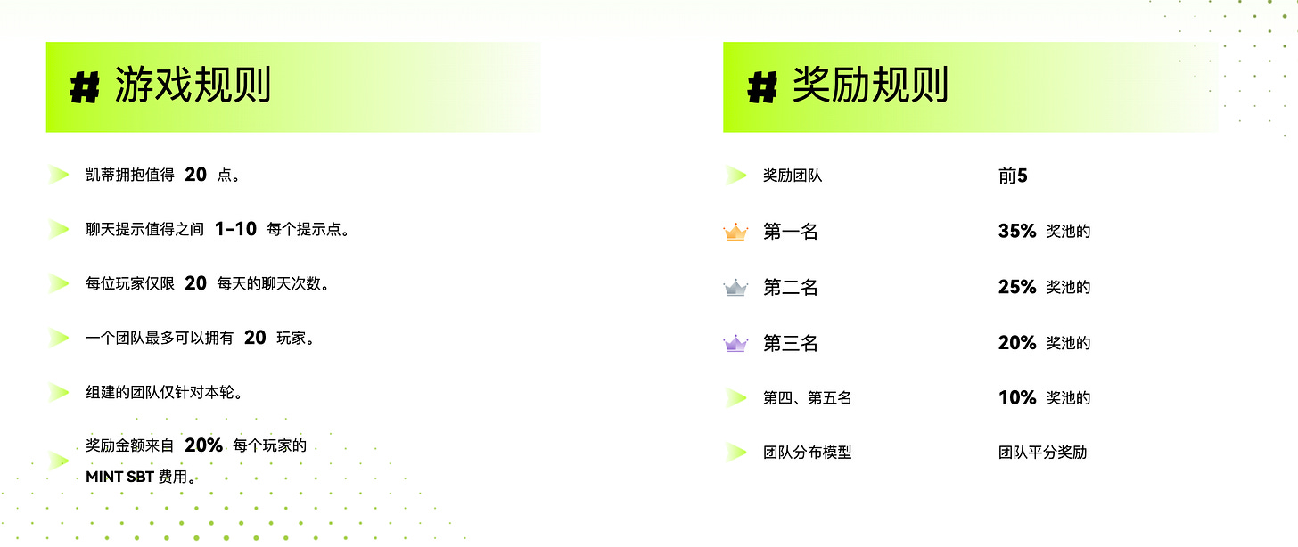 亮点:使用 SBT 来构建宠物可以防止用户过度宣传玩家使用该应用程序所需的宠物,从而使注册要求保持稳定。团队任务宠物的核心功能是陪伴,鼓励每个人将宠物视为终生伴侣——永远不要抛弃它们,希望玩家们能够善待自己的宠物,永远与它们一起成长。